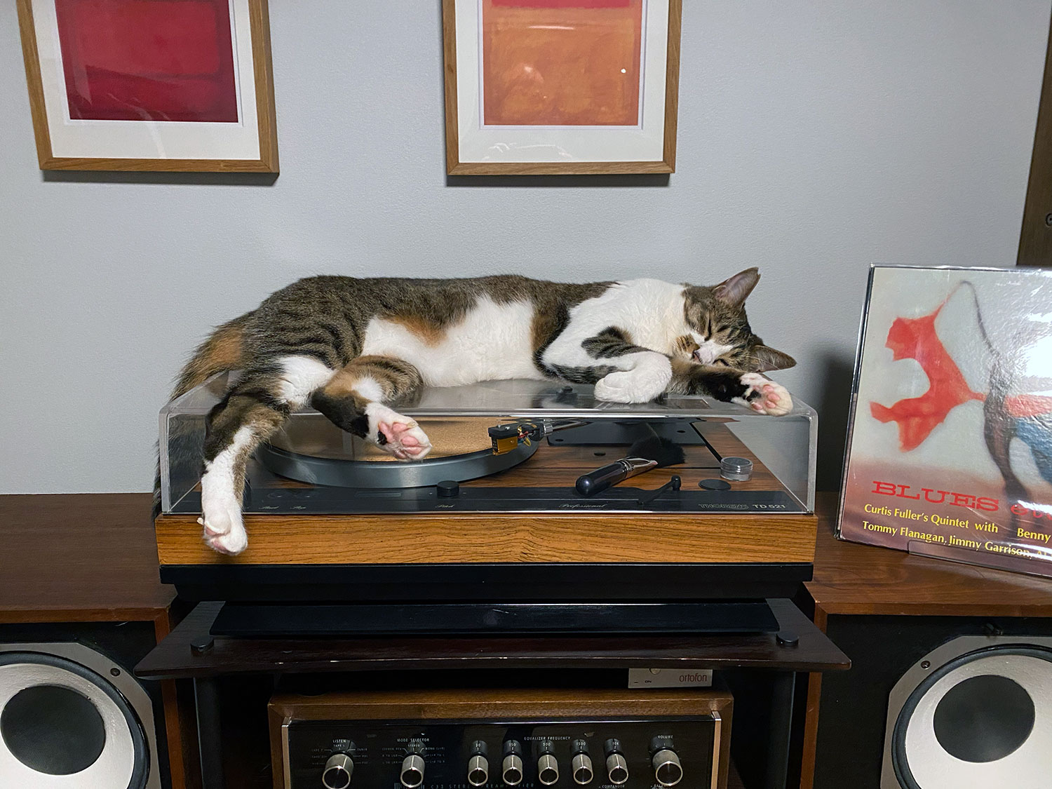 ※写真は政治には関係なくレコードプレーヤーの上でくつろぐマメタロウ