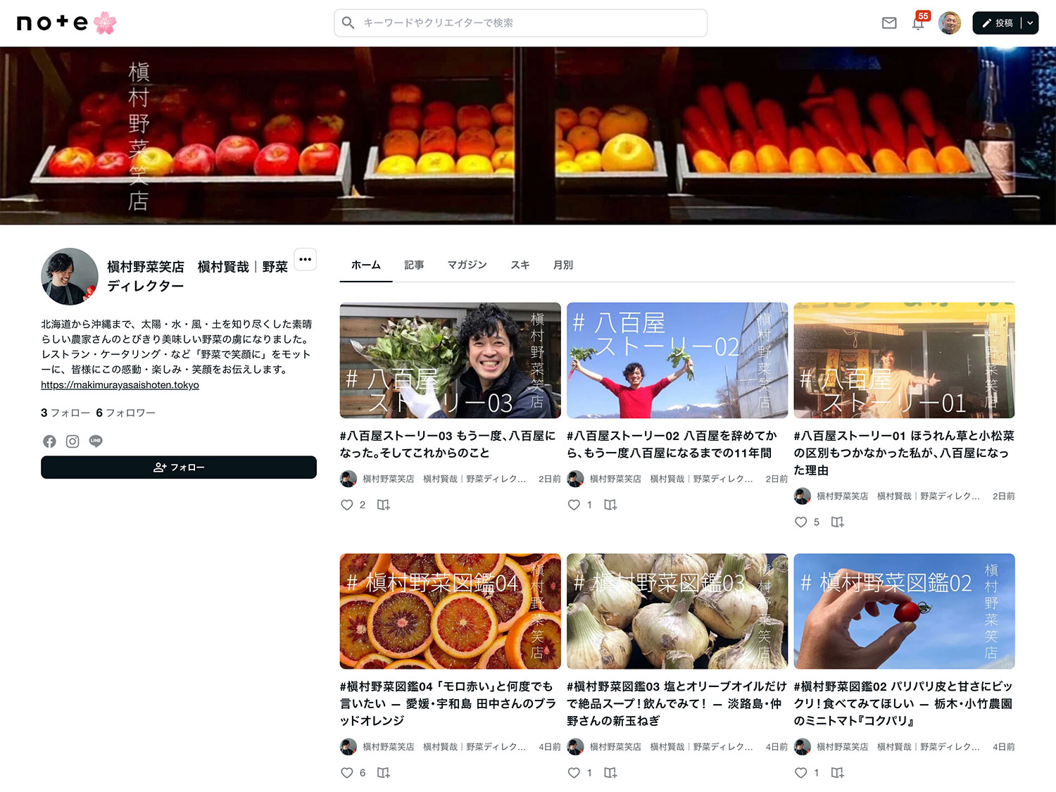 noteにて、槇村野菜笑店のコンテンツがスタートしました。